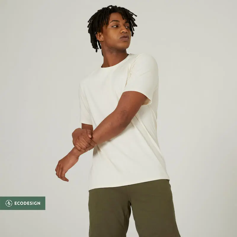 Compra en Decathlon Camiseta Fitness 500 Hombre No Dye Regular Hemos elegido este básico, blanco, mayoritariamente de algodón… ¡sin teñir! ¿Por qué? Para reducir nuestras emisiones de CO2 en un 30 % y nuestro consumo de agua en un 70 %.