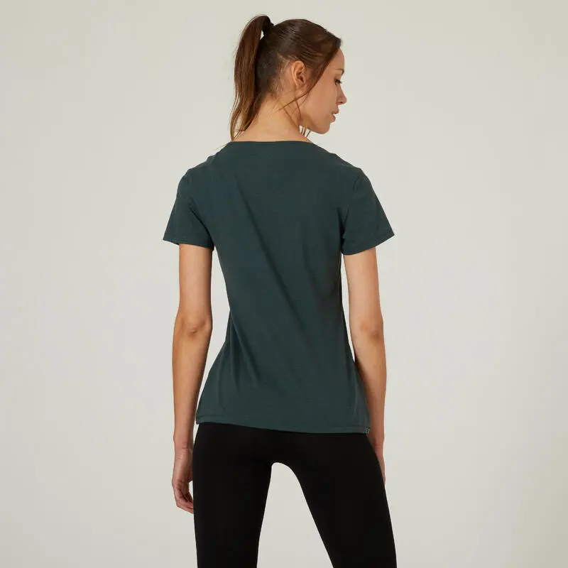 Domyos Camiseta Fitness 500 Mujer Verde Melaza Manga Corta Cuello Redondo Algodón