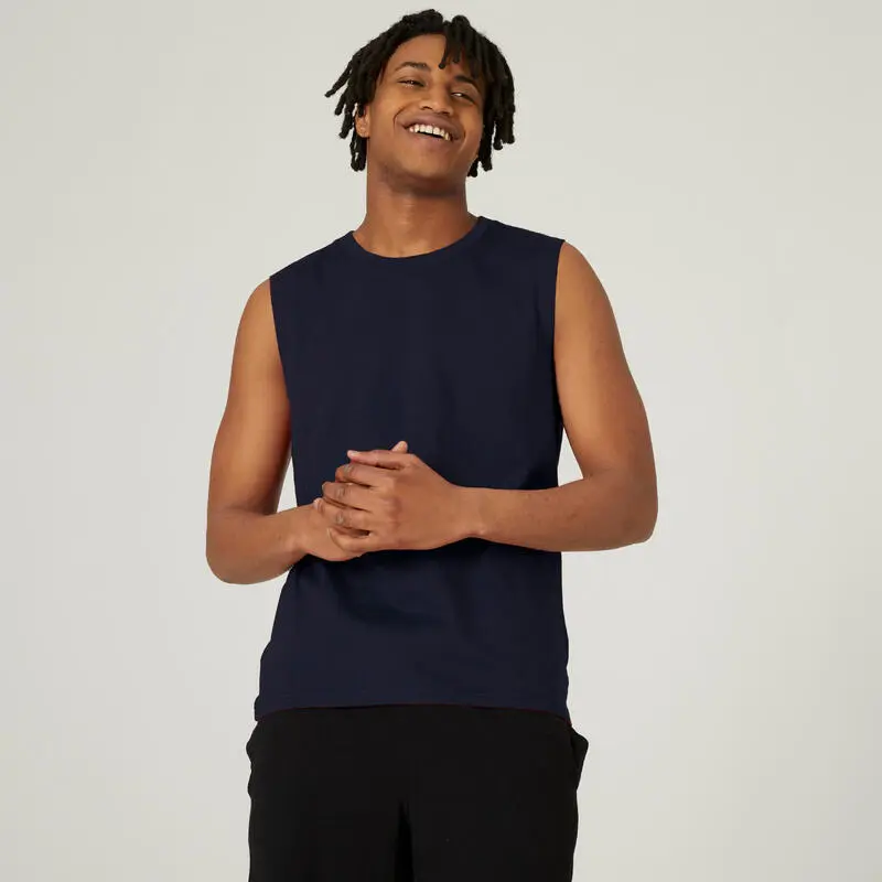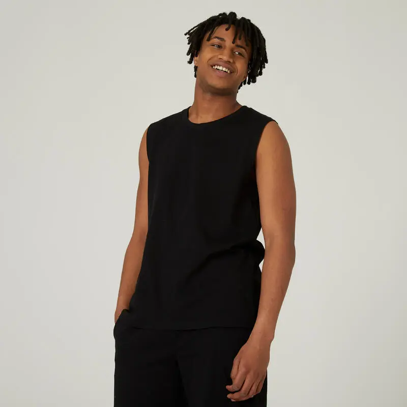 Compra en Decathlon Camiseta fitness sin mangas tirantes cuello redondo algodón Domyos 500 Camiseta sin mangas 100% algodón con un tipo de corte recto. Un básico en tu outfit del día a día y que se adapta para cualquier tipo de práctica deportiva.