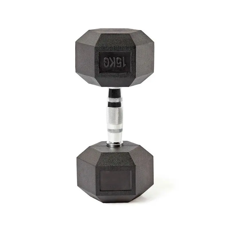 Compra en Decathlon MANCUERNA HEXAGONAL DUMBBELL 15 KG (Sin logo) Las mancuernas es el material esencial que no puede faltar en ningun gimnasio ni zona de entrenamiento en casa.