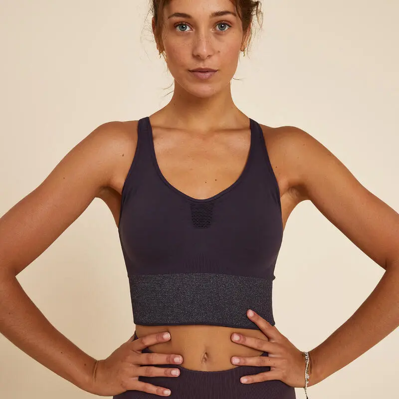 Compra en Decathlon Sujetador top largo de yoga dinámico Mujer Kimjaly Nuestras yoguinis han diseñado este sujetador-top largo ecodiseñado que envuelve el pecho sin comprimirlo, para que ejecutes los vinyasas con absoluta tranquilidad.