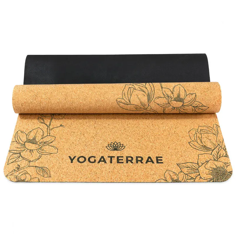 YOGATERRAE Esterilla Yoga De Corcho Y Caucho Natural + Correa De Transporte Y Estiramiento