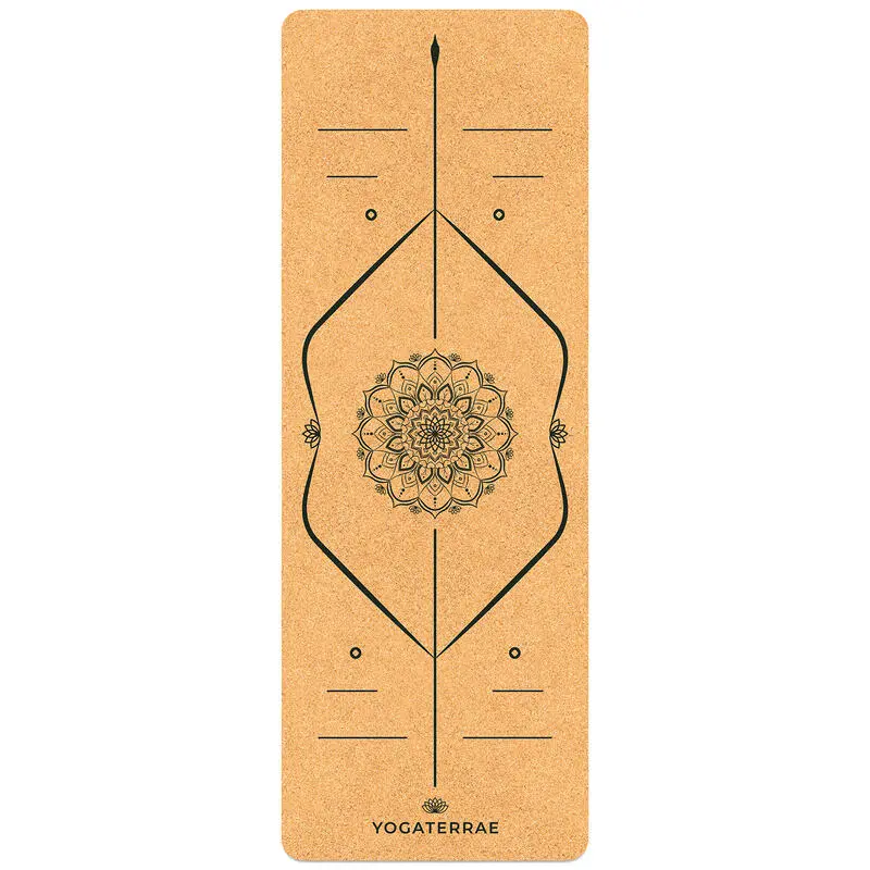Compra en Decathlon Esterilla yoga de corcho y caucho natural + Correa de transporte y estiramiento Esterilla de yoga antideslizante de corcho y caucho natural LINEA DE CUERPO + MANDALA 183x66x0,5cm + Correa de transporte y estiramiento